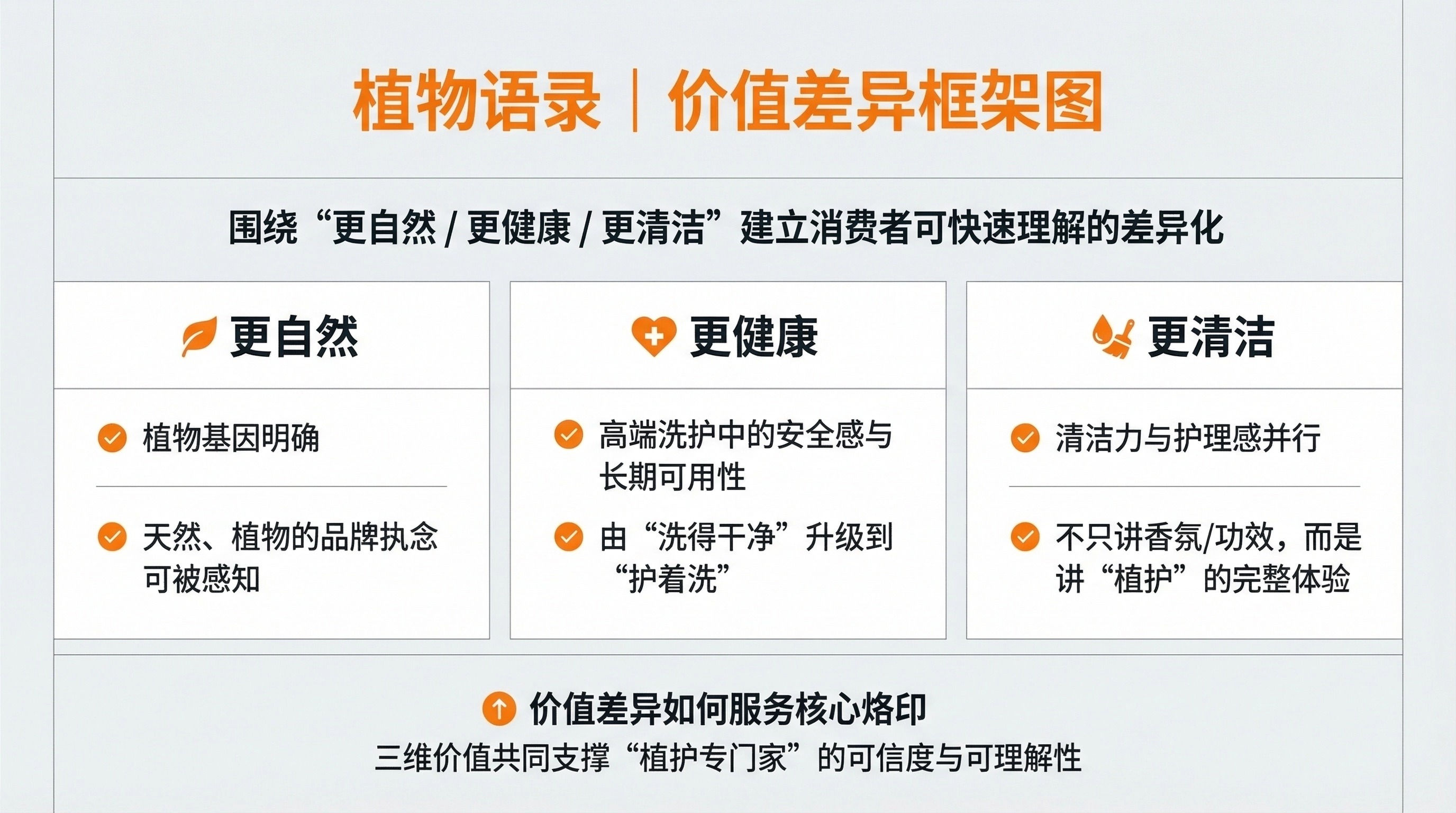 价值差异框架:围绕“更自然 / 更健康 / 更清洁”建立可被消费者快速理解的差异化框架。