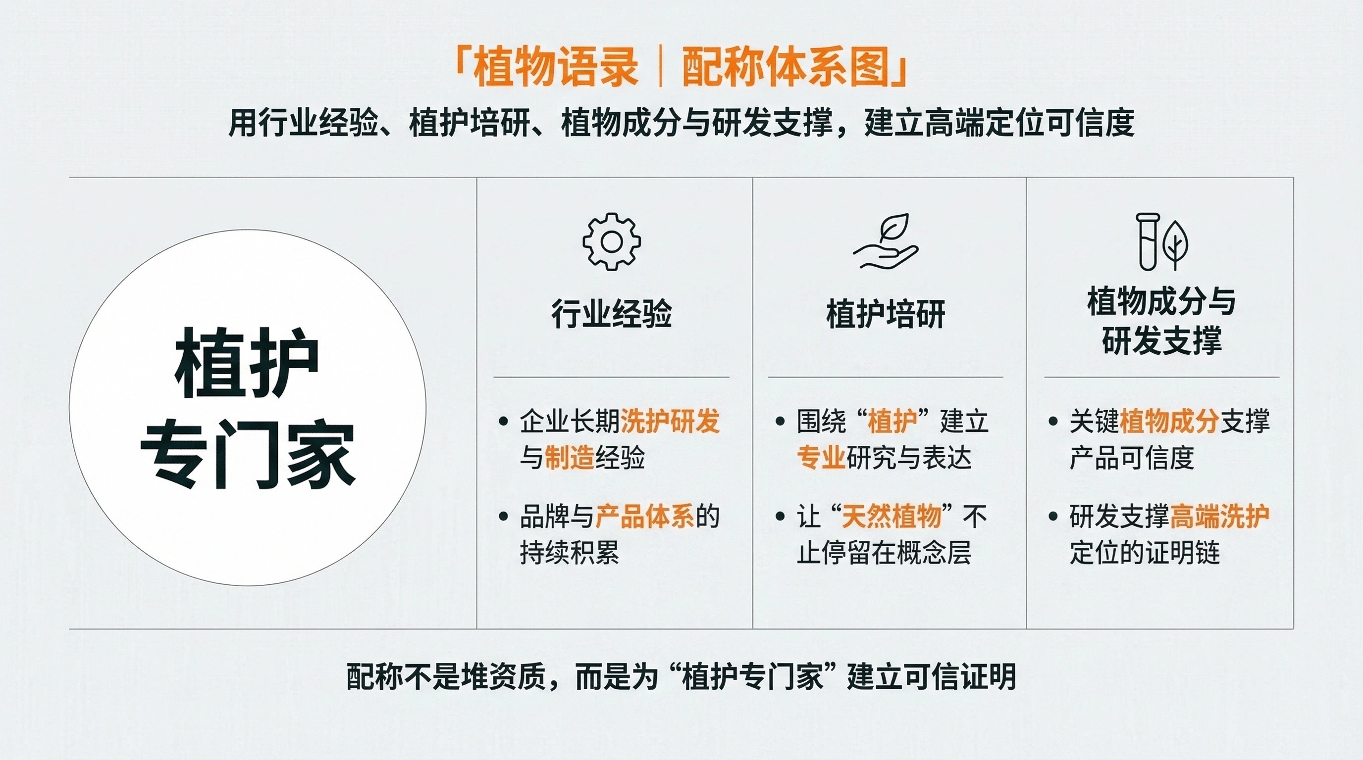 品牌定位:植物语录 =「植护专门家」,以“植护”作为统一心智支点与表达主线。